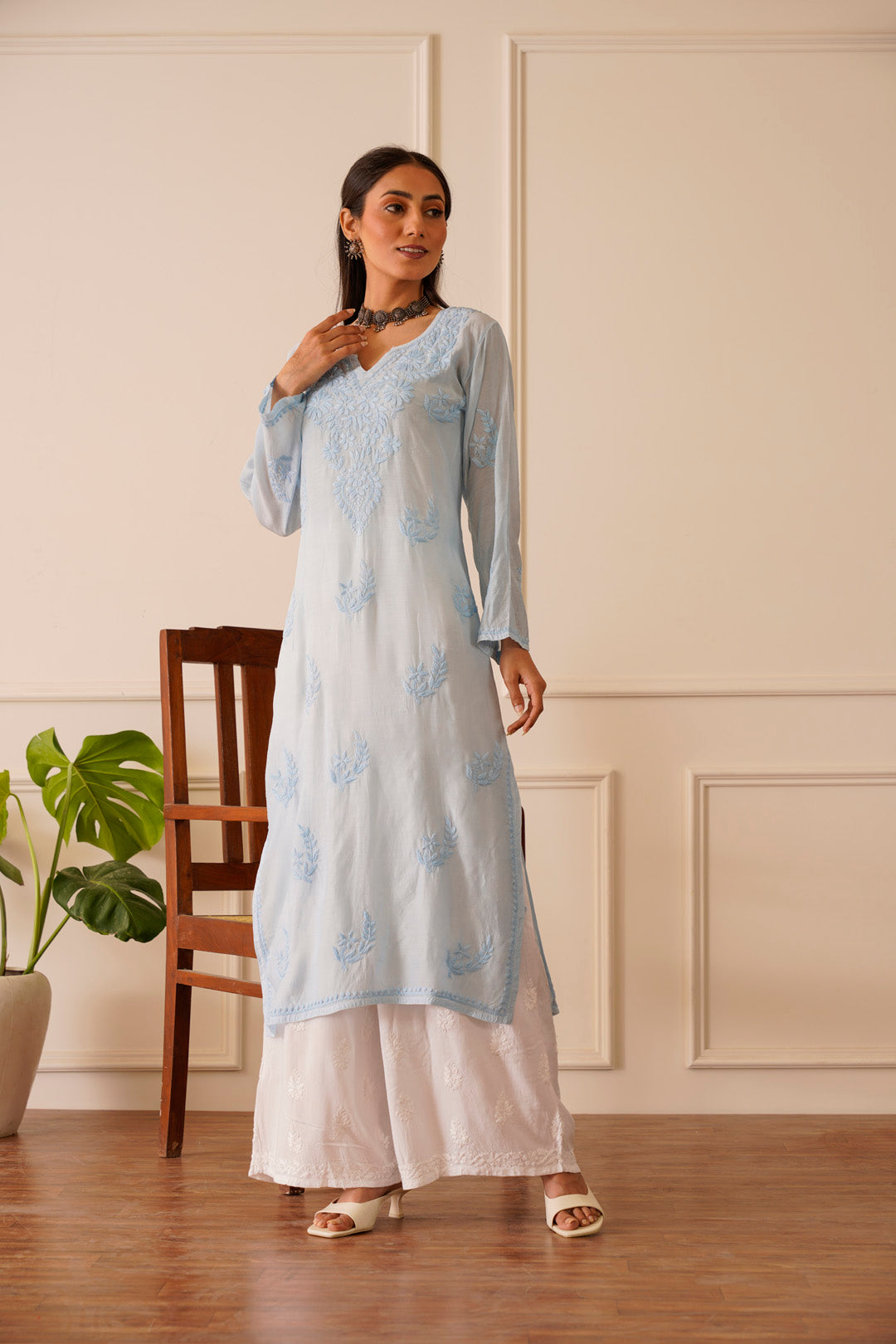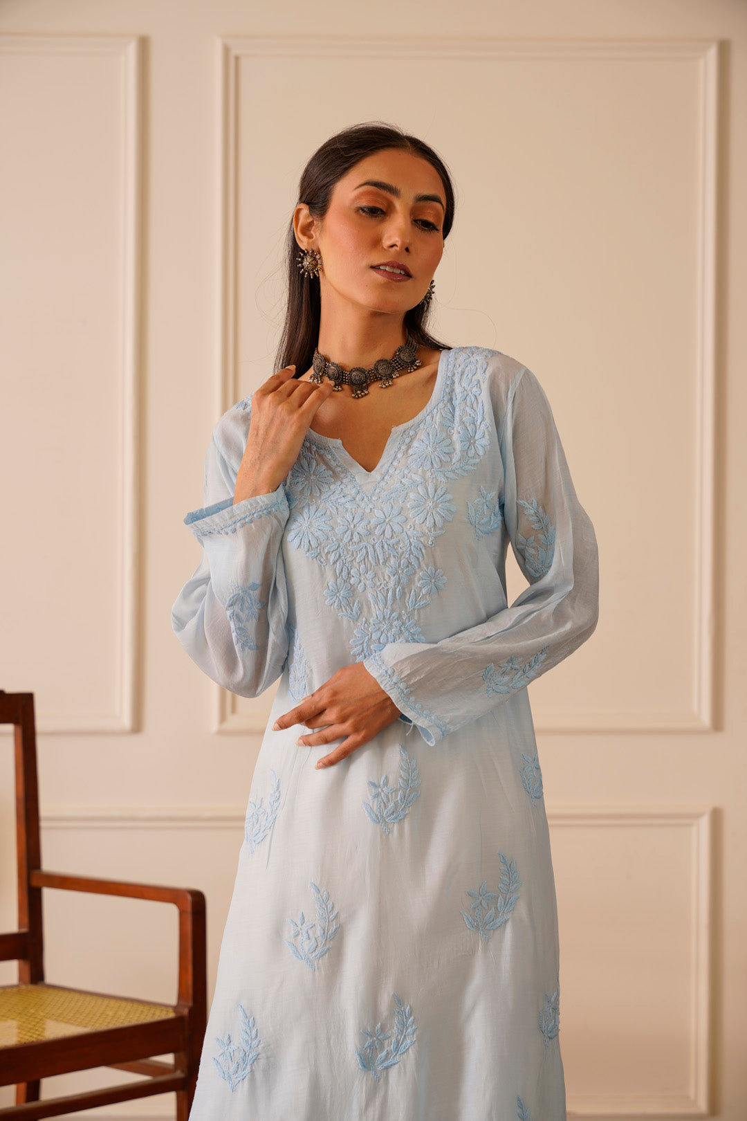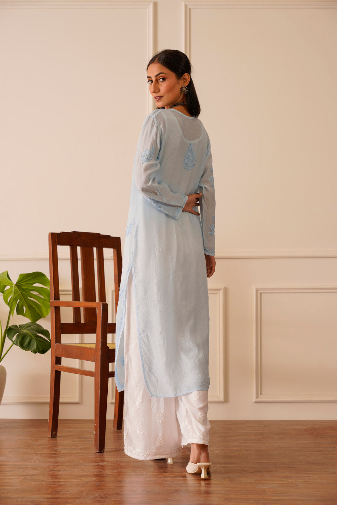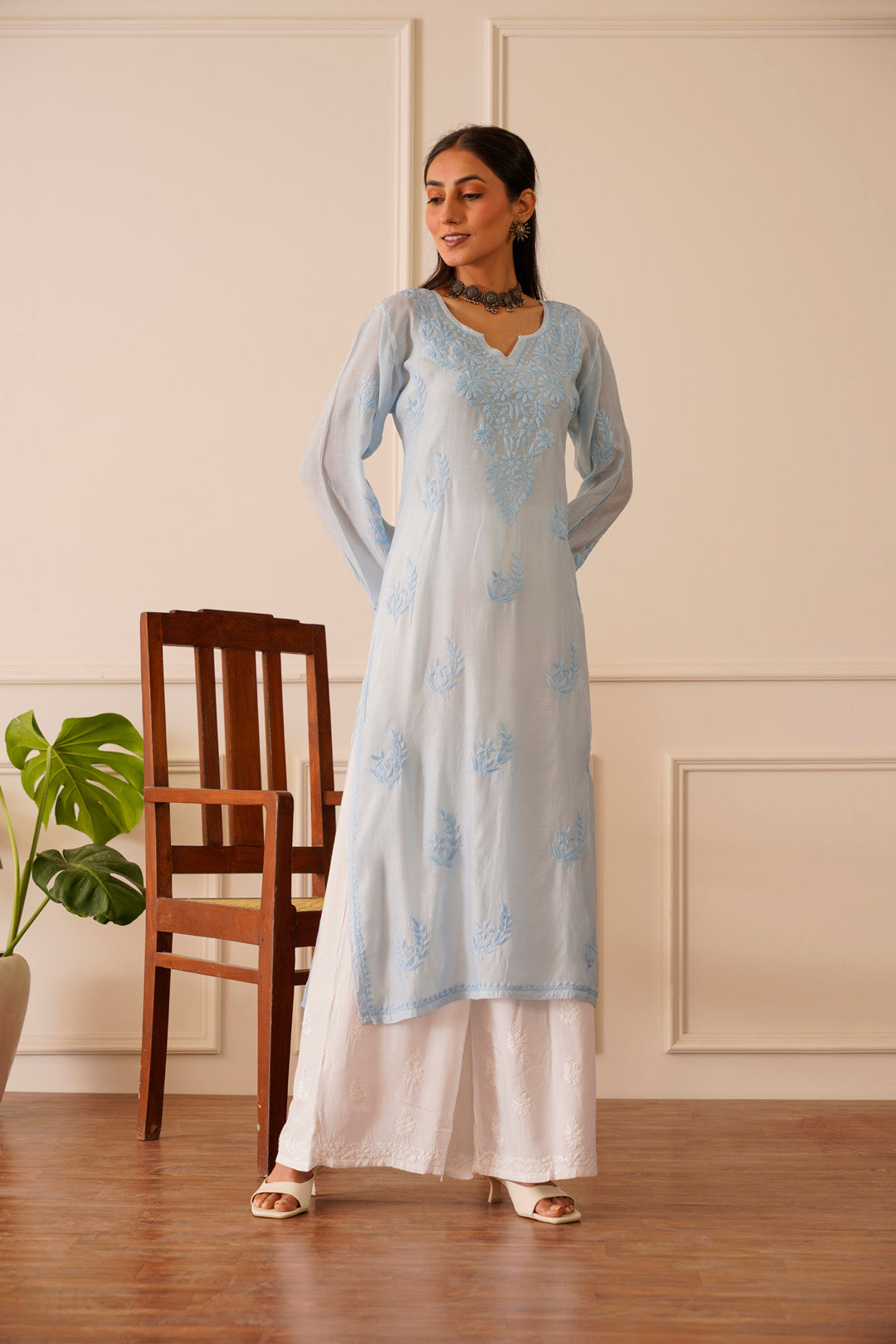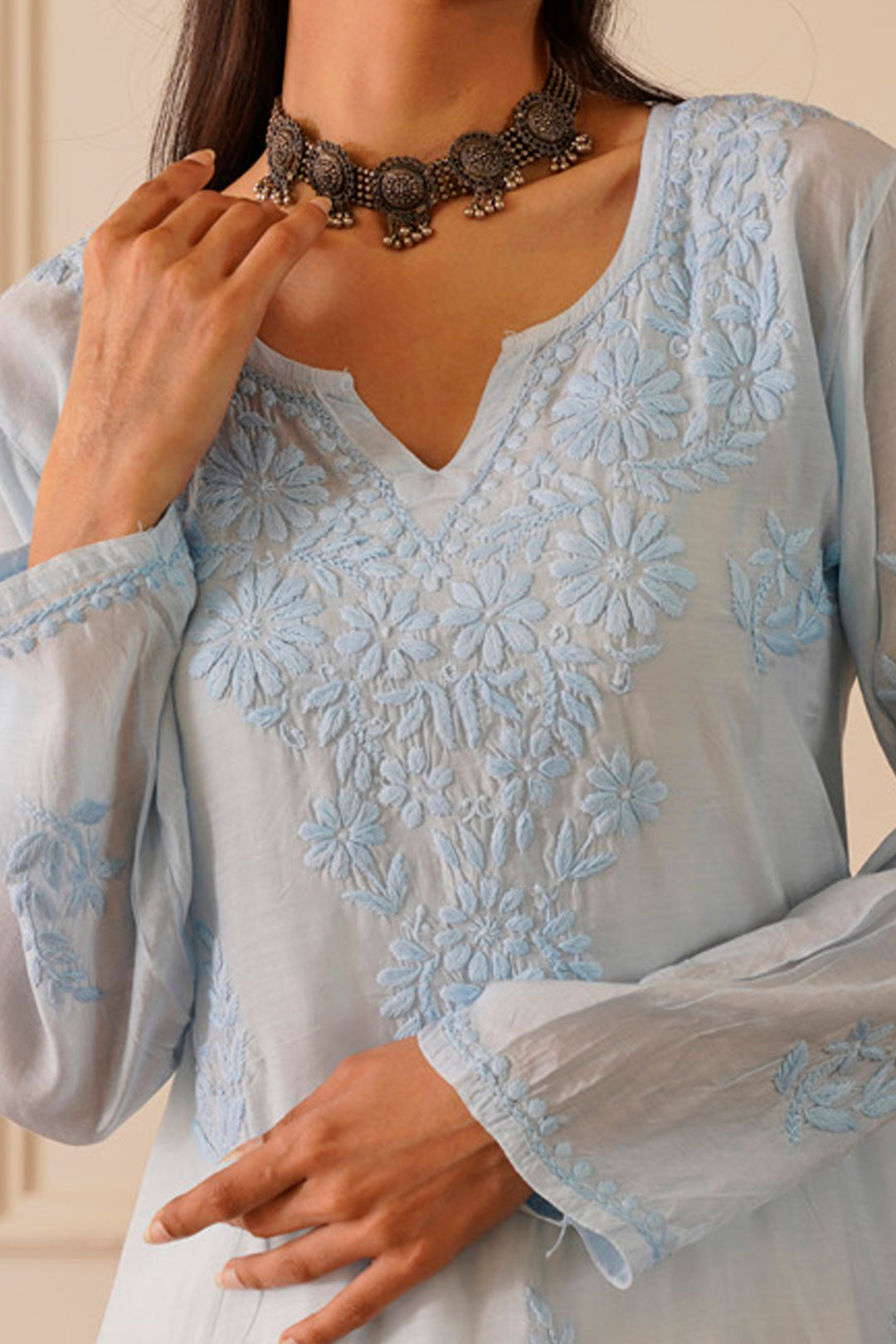 Elegant Light Glacier Lake Muslin Aline Kurti