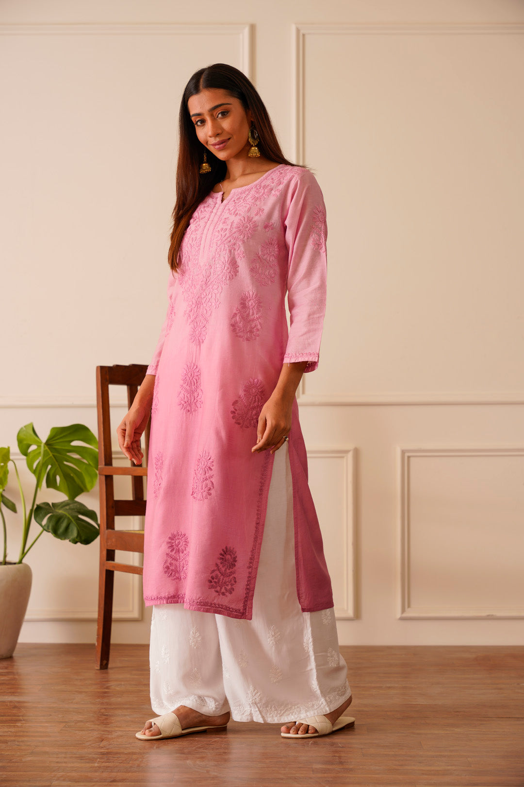 Subtle Pink Nude Chikankari Ombre Kurti