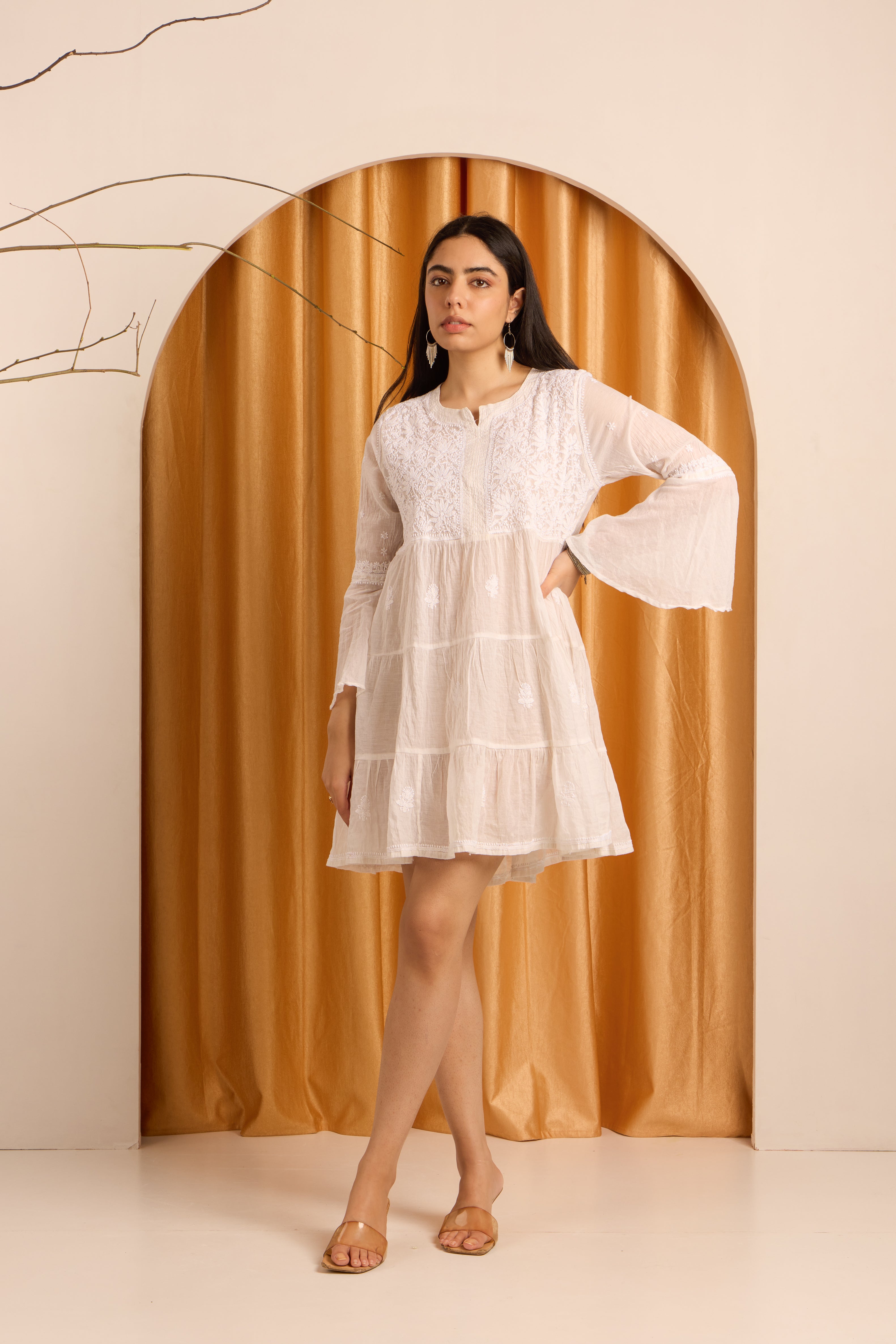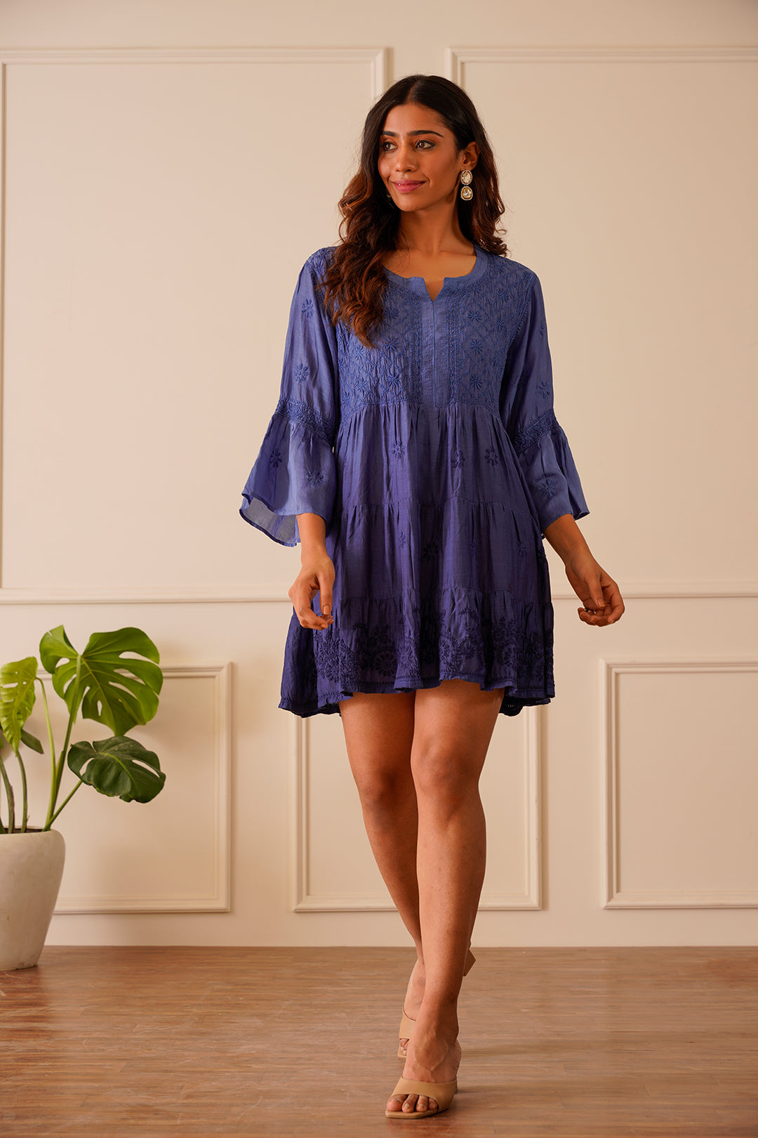 Dazzling Dark Brown Muslin Short Kurti Dress - House Of Awadh