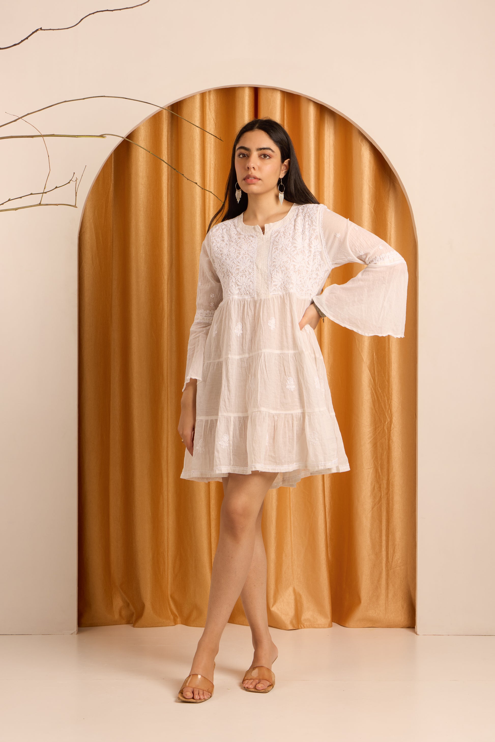 Elegant White Chikankari Short Dress